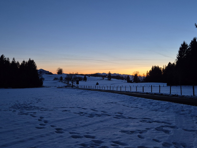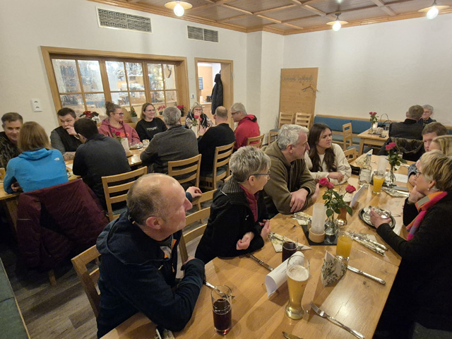Eine fröhliche Truppe wagte sich auf den teils eisig-glatten Weg, wärmte sich unterwegs bei Punsch und Glühwein mit wunderbarem Blick auf den abendlichen Sonnenuntergang und kehrte schließlich noch zum gemütlichen und geselligen Beisammensein im Gasthof Adler ein.